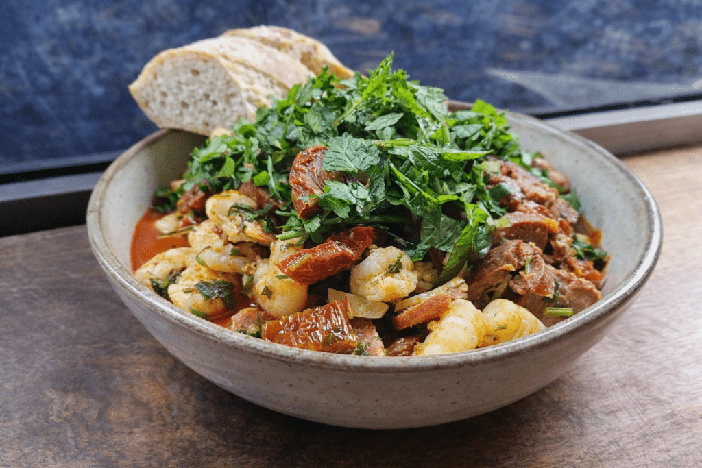 Te krewetki to szybkie danie w hiszpańskim stylu: intensywne, aromatyczne i lekko pikantne dzięki chorizo. Suszone pomidory dodają głębi, a