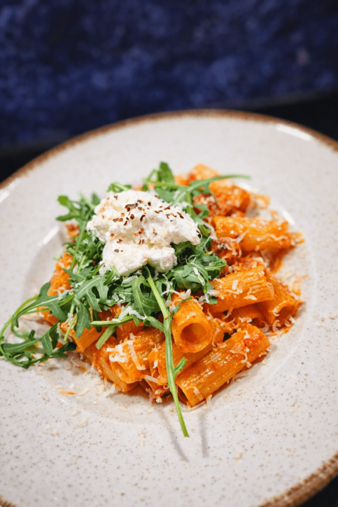 Rigatoni alla vodka – kremowy, pomidorowy sos z nutą śmietanki i delikatnym aromatem wódki, który nadaje mu głębi i charakteru.