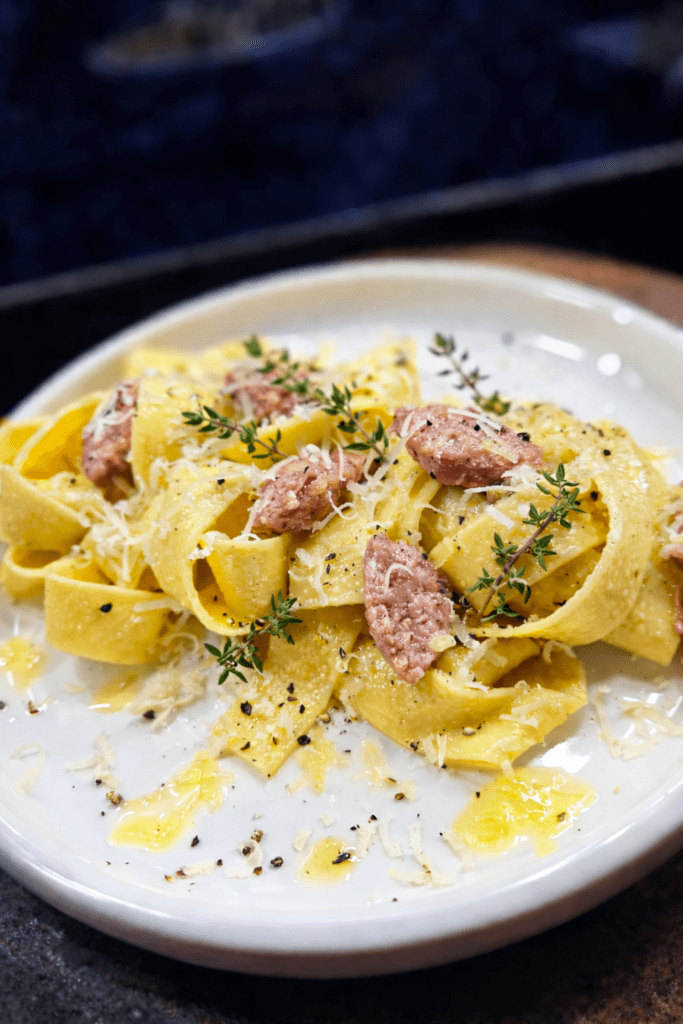 Pappardelle z salsiccią truflową to danie o głębokim, otulającym aromacie – kremowy sos otacza szerokie wstążki makaronu, a delikatna nuta […]